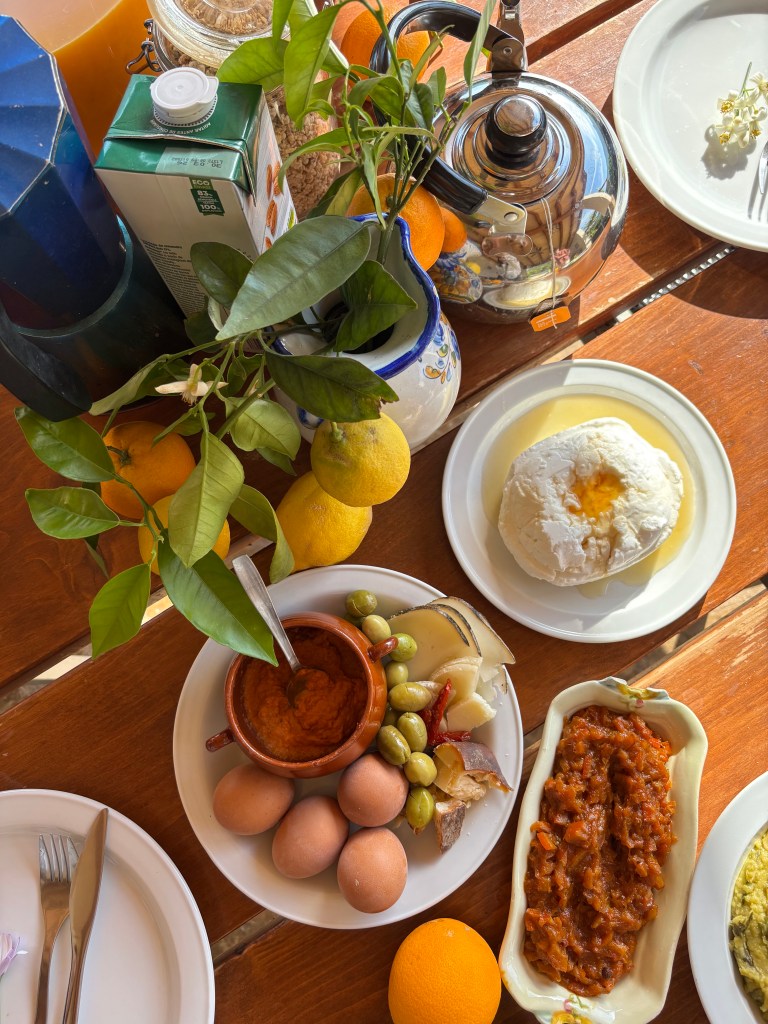Podczas kiedy my witamy słońce na macie, w środku zaczyna pachnieć śniadanie. Świeża, lekka i lokalna kuchnia w wykonaniu Sabiny, wspólny stół pod gołym niebem i bardzo nieśpieszne rozmowy przy kawie.
